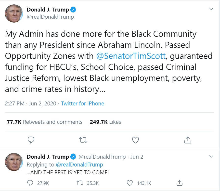 — Donald J. Trump (@realDonaldTrump) June 2, 2020